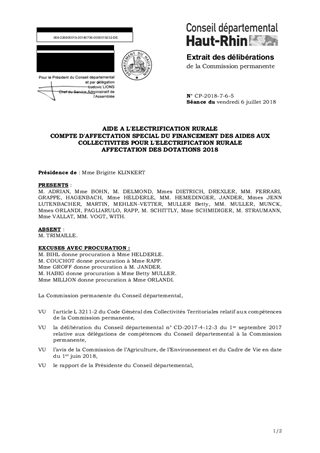 AIDE A L'ELECTRIFICATION RURALE COMPTE D'AFFECTATION SPECIAL DU FINANCEMENT DES AIDES AUX COLLECTIVITES POUR L'ELECTRIFICATION RURALEAFFECTATION DES DOTATIONS 2018