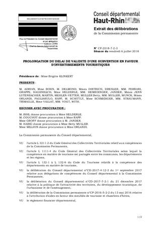 PROLONGATION DU DELAI DE VALIDITE D'UNE SUBVENTION EN FAVEUR D'INVESTISSEMENTS TOURISTIQUES