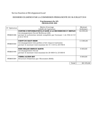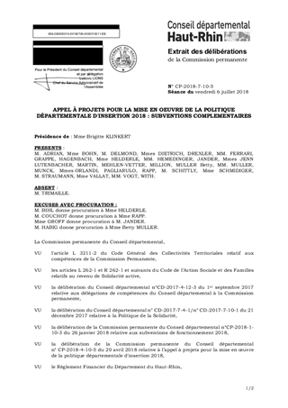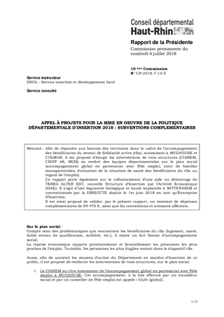 APPEL À PROJETS POUR LA MISE EN OEUVRE DE LA POLITIQUE DÉPARTEMENTALE D'INSERTION 2018 : SUBVENTIONS COMPLEMENTAIRES