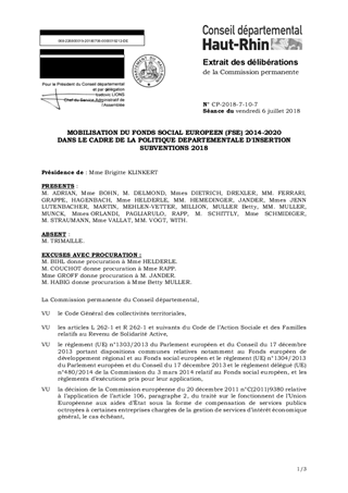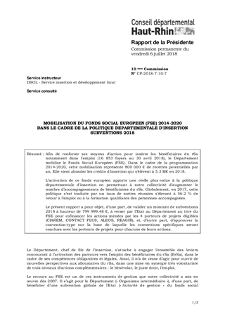 MOBILISATION DU FONDS SOCIAL EUROPEEN (FSE) 2014-2020DANS LE CADRE DE LA POLITIQUE DEPARTEMENTALE D'INSERTION SUBVENTIONS 2018