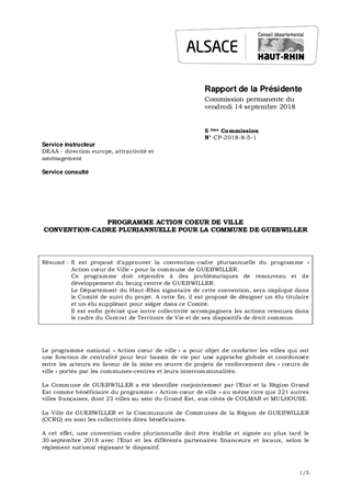 PROGRAMME ACTION COEUR DE VILLE CONVENTION-CADRE PLURIANNUELLE POUR LA COMMUNE DE GUEBWILLER