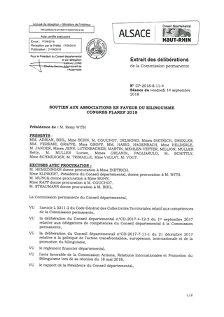 La politique de la langue et culture régionales d'Alsace doit permettre aux populations de notre territoire de s'approprier ou de se réapproprier notre patrimoine linguistique et culturel. Le Conseil départemental soutient les associations qui œuvrent dans ce domaine. Dans le cadre du présent rapport, il est proposé d’accorder une subvention exceptionnelle de 5 000 € à l’association ELTERN Alsace pour la co-organisation du congrès FLAREP 2018. Ce rapport a fait l’objet d’un avis favorable de la part de la Commission Actions, Relations Internationales et Promotion du Bilinguisme lors de sa réunion du 18 mai 2018.