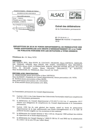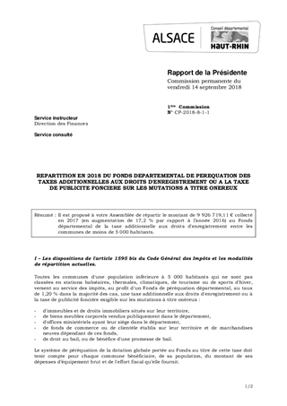 REPARTITION EN 2018 DU FONDS DEPARTEMENTAL DE PEREQUATION DES TAXES ADDITIONNELLES AUX DROITS D'ENREGISTREMENT OU A LA TAXE DE PUBLICITE FONCIERE SUR LES MUTATIONS A TITRE ONEREUX