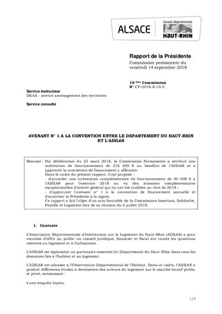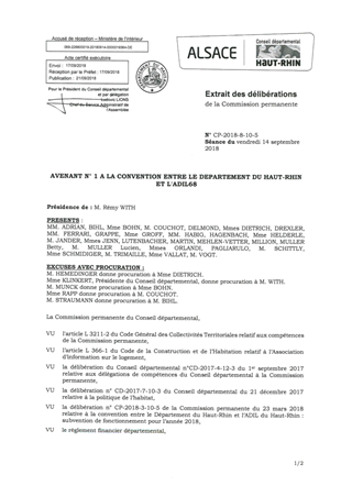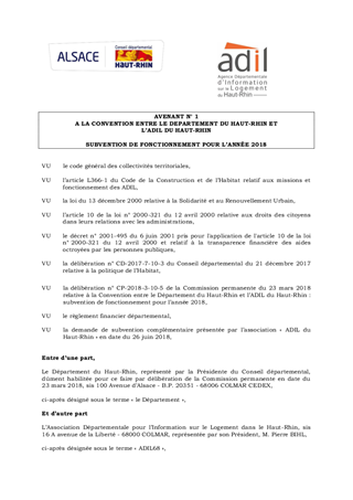 AVENANT N° 1 A LA CONVENTION ENTRE LE DEPARTEMENT DU HAUT-RHIN ET L'ADIL68