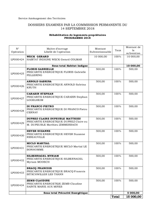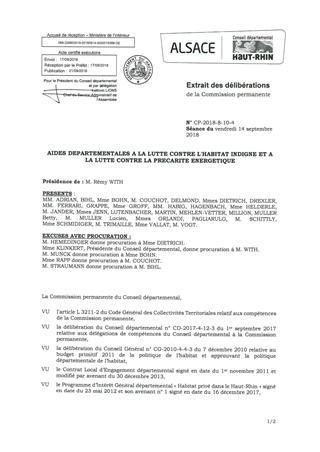 Dans le cadre des aides départementales à la lutte contre l’habitat indigne et du programme « Habitat privé dans le Haut-Rhin » 2012-2018 en faveur de la précarité énergétique pour les propriétaires occupants et bailleurs, il vous est proposé de retenir 11 dossiers pour une subvention totale de 15 000 €. La Commission Solidarité, Famille, Insertion et Logement a exprimé un avis favorable.