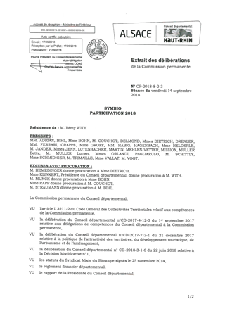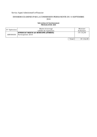 Dans le cadre du présent rapport, il est proposé, au titre de l'année 2018, de verser la participation statutaire d'un montant de 19 116,49 € due par le Département au SYMBIO pour son fonctionnement.