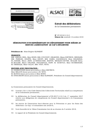 DÉSIGNATION D'UN REPRÉSENTANT DU DÉPARTEMENT POUR SIÉGER AU SEIN DE L'ASSOCIATION LE CAP À MULHOUSE