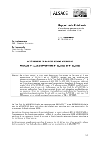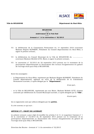 ACHÈVEMENT DE LA VOIE SUD DE MULHOUSEAVENANT N° 1 AUX CONVENTIONS N° 32/2013 ET N° 33/2013