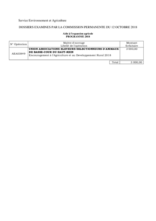 Le Département encourage la mise en œuvre de projets en faveur de la préservation de l’environnement, l’animation des scolaires et l’information du grand public. A ce titre, il est proposé de soutenir l’Union des Associations d’Eleveurs Sélectionneurs d’Animaux de Basse-Cour du Haut-Rhin pour un montant total de 3 000 €.