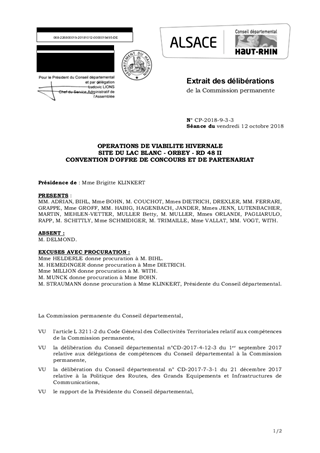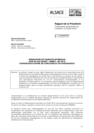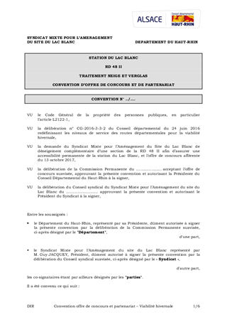 OPERATIONS DE VIABILITE HIVERNALESITE DU LAC BLANC - ORBEY - RD 48 IICONVENTION D'OFFRE DE CONCOURS ET DE PARTENARIAT
