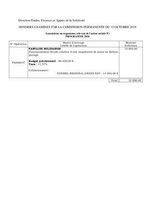SUBVENTIONS 2018 AUX ASSOCIATIONS OU ORGANISMES RELEVANT DE LA POLITIQUE SOLIDARITE ET AUTONOMIE POUR UN MONTANT DE 10 000 EUROS