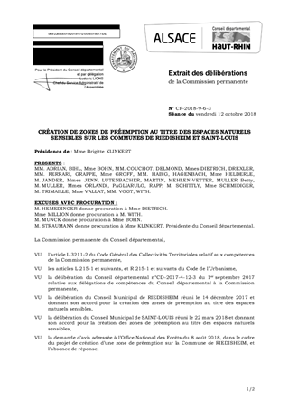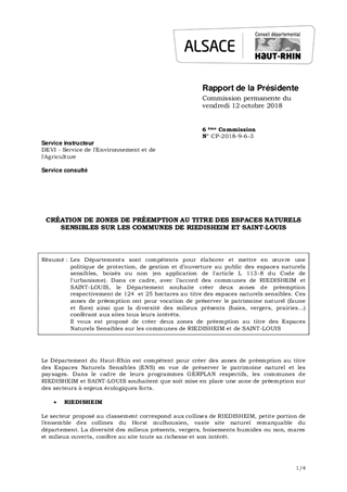 CRÉATION DE ZONES DE PRÉEMPTION AU TITRE DES ESPACES NATURELS SENSIBLES SUR LES COMMUNES DE RIEDISHEIM ET SAINT-LOUIS