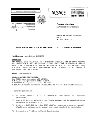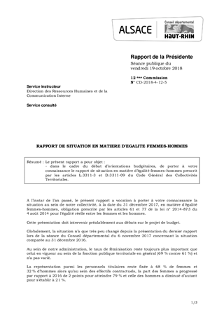 Le présent rapport a pour objet : - dans le cadre du débat d’orientations budgétaires, de porter à votre connaissance le rapport de situation en matière d’égalité femmes-hommes prescrit par les articles L.3311-3 et D.3311-09 du Code Général des Collectivités Territoriales.
