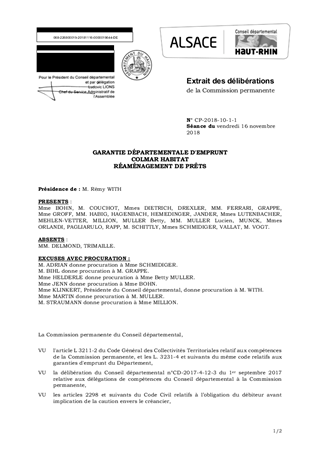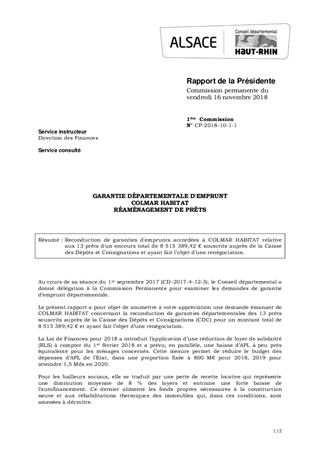 GARANTIE DÉPARTEMENTALE D'EMPRUNTCOLMAR HABITATRÉAMÉNAGEMENT DE PRÊTS