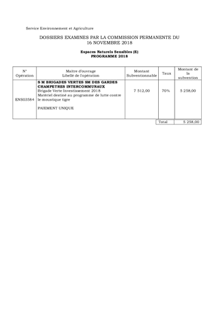 ESPACES NATURELS SENSIBLES (INDIRECT)PARTICIPATION A L'ÉQUIPEMENT DE LA BRIGADE VERTE POUR LA LUTTE CONTRE LE MOUSTIQUE TIGRE