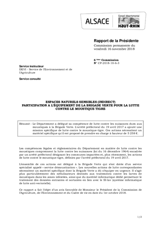 Le Département a délégué sa compétence de lutte contre les nuisances dues aux moustiques à la Brigade Verte. L'arrêté préfectoral du 19 avril 2017 a ajouté une mission spécifique de lutte contre le moustique-tigre. Ces actions nécessitent un matériel spécifique qu'il est proposé de prendre en charge à hauteur de 5 258 €.
