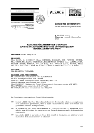 GARANTIE DÉPARTEMENTALE D'EMPRUNTSOCIÉTÉ MULHOUSIENNE DES CITÉS OUVRIÈRES (SOMCO)RÉAMÉNAGEMENT DE PRÊTS