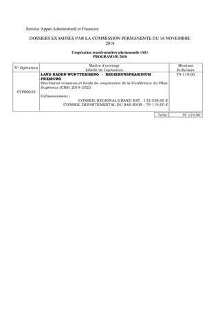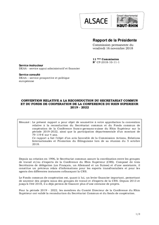 CONVENTION RELATIVE A LA RECONDUCTION DU SECRETARIAT COMMUN ET DU FONDS DE COOPERATION DE LA CONFERENCE DU RHIN SUPERIEUR 2019 - 2022