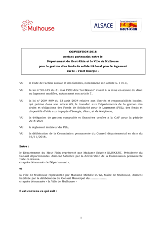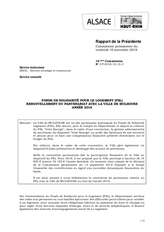 FONDS DE SOLIDARITÉ POUR LE LOGEMENT (FSL)RENOUVELLEMENT DU PARTENARIAT AVEC LA VILLE DE MULHOUSEANNÉE 2018
