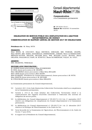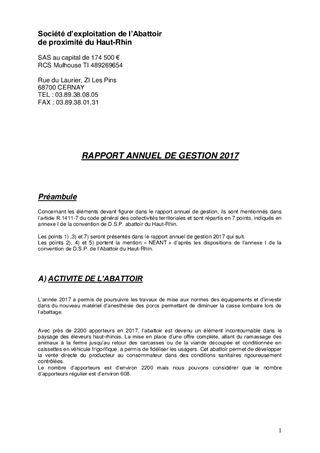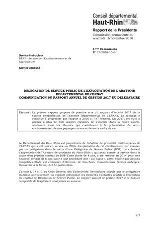 DELEGATION DE SERVICE PUBLIC DE L'EXPLOITATION DE L'ABATTOIR DEPARTEMENTAL DE CERNAYCOMMUNICATION DU RAPPORT ANNUEL DE GESTION 2017 DU DELEGATAIRE