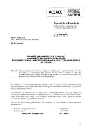 GARANTIE DEPARTEMENTALE D'EMPRUNTASSOCIATION LES MAISONS DE LA CROIXREHABILITATION DU PAVILLON NOTRE-DAME A L'INSTITUT SAINT-JOSEPH DE COLMAR