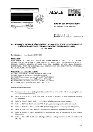 APPROBATION DU PLAN DÉPARTEMENTAL D'ACTION POUR LE LOGEMENT ET L'HÉBERGEMENT DES PERSONNES DEFAVORISÉES (PDALHPD)2018 - 2023
