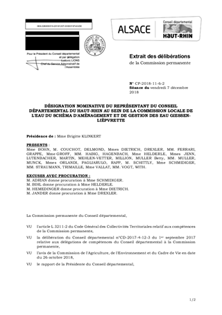DÉSIGNATION NOMINATIVE DU REPRÉSENTANT DU CONSEIL DÉPARTEMENTAL DU HAUT-RHIN AU SEIN DE LA COMMISSION LOCALE DE L'EAU DU SCHÉMA D'AMÉNAGEMENT ET DE GESTION DES EAU GIESSEN-LIÈPVRETTE