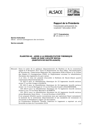 PLANETES 68 - AIDES A LA REHABILITATION THERMIQUEDANS LE PARC LOCATIF SOCIAL(HABITATS DE HAUTE-ALSACE)