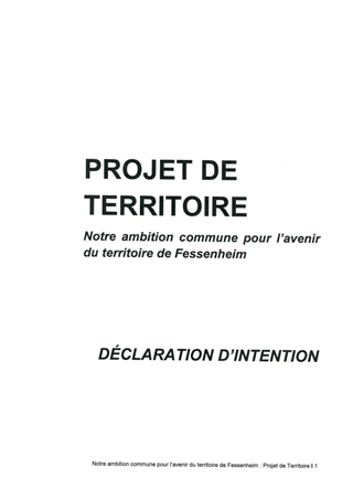 L'ensemble des partenaires du projet de territoire de FESSENHEIM souhaite signer une déclaration d'intention fixant les orientations stratégiques du projet de territoire qui servira de base à la rédaction d'un contrat de territoire à venir.