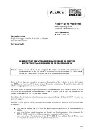 Pour l'année 2019, il est proposé de verser au SDIS une contribution au fonctionnement de 22 750 000 € et une subvention d'équipement, de 1 000 000 €, fléchée sur l'acquisition de véhicules et de moyens informatiques.