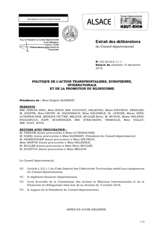 POLITIQUE DE L'ACTION TRANSFRONTALIERE, EUROPEENNE,INTERNATIONALEET DE LA PROMOTION DU BILINGUISME