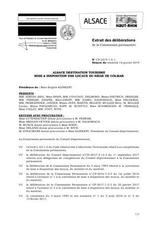 ALSACE DESTINATION TOURISMEMISE A DISPOSITION DES LOCAUX DU SIEGE DE COLMAR