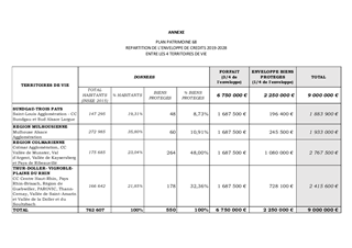PLAN PATRIMOINE 68REPARTITION DE L'ENVELOPPE BUDGETAIRE ENTRE LES 4 TERRITOIRES DE VIE