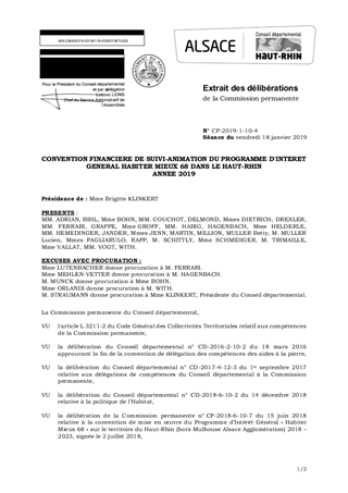 CONVENTION FINANCIERE DE SUIVI-ANIMATION DU PROGRAMME D'INTERET GENERAL HABITER MIEUX 68 DANS LE HAUT-RHINANNEE 2019