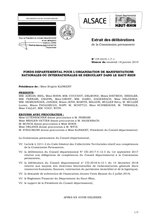FONDS DEPARTEMENTAL POUR L'ORGANISATION DE MANIFESTATIONS NATIONALES OU INTERNATIONALES SE DEROULANT DANS LE HAUT-RHIN