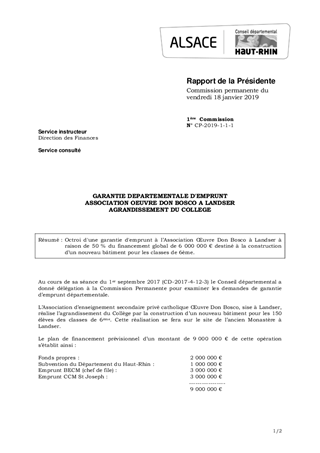 GARANTIE DEPARTEMENTALE D'EMPRUNTASSOCIATION OEUVRE DON BOSCO A LANDSERAGRANDISSEMENT DU COLLEGE