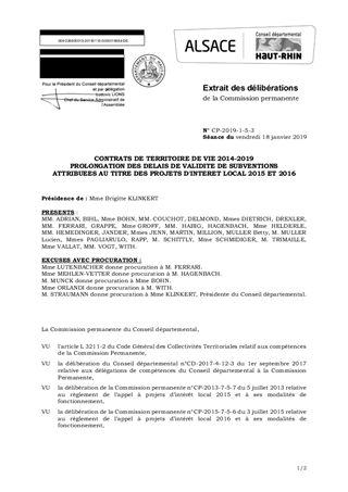 CONTRATS DE TERRITOIRE DE VIE 2014-2019PROLONGATION DES DELAIS DE VALIDITE DE SUBVENTIONSATTRIBUEES AU TITRE DES PROJETS D'INTERET LOCAL 2015 ET 2016