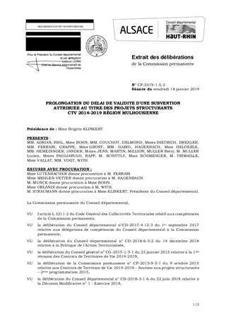 PROLONGATION DU DELAI DE VALIDITE D'UNE SUBVENTION ATTRIBUEE AU TITRE DES PROJETS STRUCTURANTS CTV 2014-2019 RÉGION MULHOUSIENNE