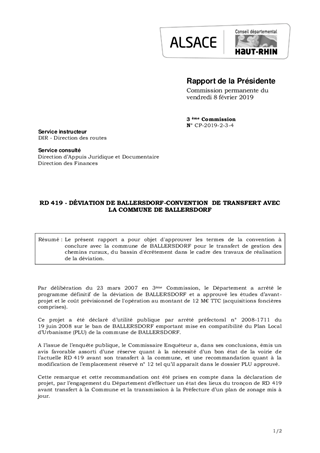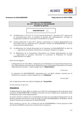 RD 419 - DÉVIATION DE BALLERSDORF-CONVENTION DE TRANSFERT AVEC LA COMMUNE DE BALLERSDORF