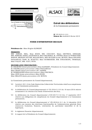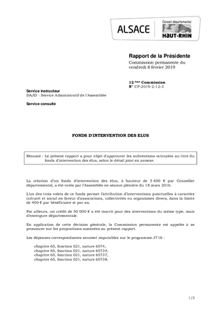 Le présent rapport a pour objet d'approuver les subventions octroyées au titre du fonds d'intervention des élus, selon le détail joint en annexe.