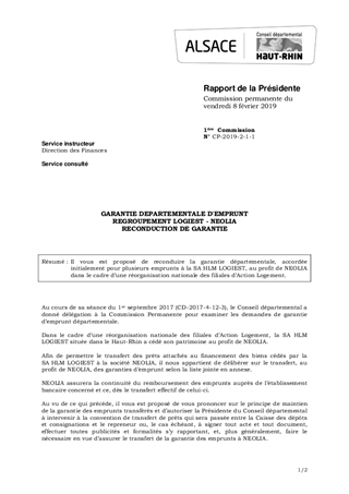 GARANTIE DEPARTEMENTALE D'EMPRUNTREGROUPEMENT LOGIEST - NEOLIARECONDUCTION DE GARANTIE