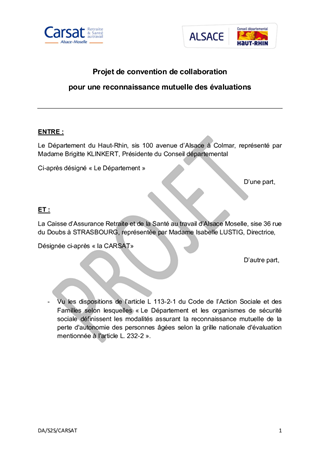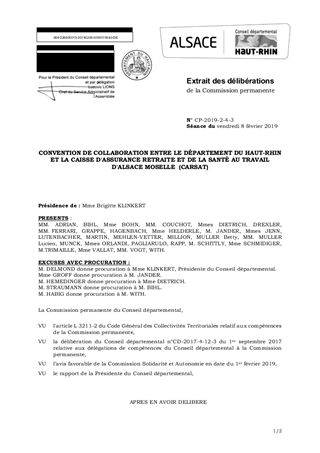 CONVENTION DE COLLABORATION ENTRE LE DÉPARTEMENT DU HAUT-RHIN ET LA CAISSE D'ASSURANCE RETRAITE ET DE LA SANTÉ AU TRAVAIL D'ALSACE MOSELLE (CARSAT)