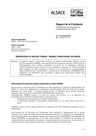 SUBVENTION AU PROJET TRISAN - RESEAU TRINATIONAL EN SANTE