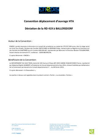 RD 419 - DÉVIATION DE BALLERSDORF - CONVENTION FINANCIÈRE AVEC ENEDIS