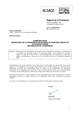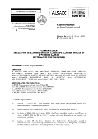 COMMUNICATIONDELEGATION DE LA PRESIDENTE EN MATIERE DE MARCHES PUBLICS ET D'ACCORDS-CADRESINFORMATION DE L'ASSEMBLEE