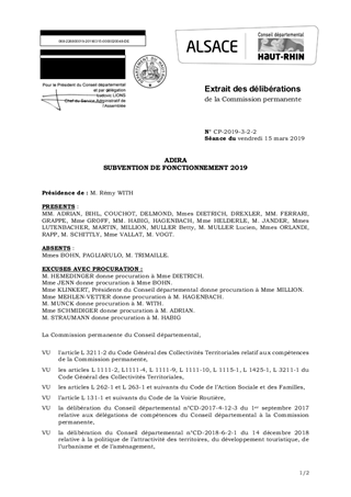 ADIRA SUBVENTION DE FONCTIONNEMENT 2019