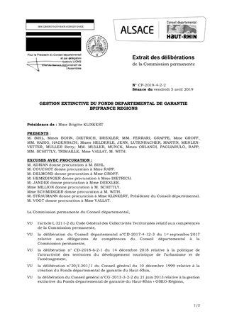 GESTION EXTINCTIVE DU FONDS DEPARTEMENTAL DE GARANTIE BPIFRANCE REGIONS