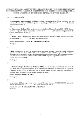 PLANS DE PREVENTION DES RISQUES TECHNOLOGIQUES (PPRT) SOCIETE EPM A ILLZACHAVENANT N°1 A LA CONVENTION DE FINANCEMENT DES MESURES FONCIERES