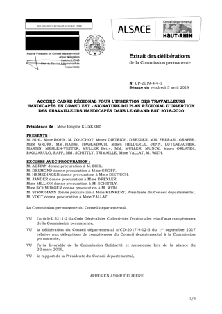 Le présent rapport a pour objet la signature du Plan Régional d’Insertion des Travailleurs Handicapés (PRITH) dans le Grand Est 2018-2020, déterminant cinq axes stratégiques destinés à lutter contre le chômage, et favoriser l’emploi des personnes en situation de handicap. Cet accord cadre a été défini par l’Etat, en concertation avec 16 institutions (Région, Organismes de Sécurité Sociale, Pôle Emploi…) et les 10 MDPH et Départements du Grand Est.