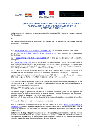 SIGNATURE D'UNE CONVENTION DE CONTRÔLE ALLÉGÉ DE DÉPENSES EN PARTENARIAT ENTRE L'ORDONNATEUR ET LE COMPTABLE PUBLIC